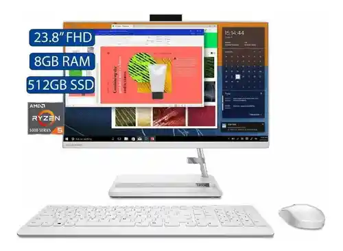 El LENOVO Ideacentre AIO 3 color blanco fue creado para un rendimiento eficiente y con una ingeniería verdaderamente elegante. Está alimentado por la última serie de procesador AMD, memoria DDR4 y gran capacidad de almacenamiento estado sólido, puede manejar cualquier tarea. Con su soporte moderno ahorraras espacio en el escritorio, su pantalla casi sin bordes, tamaño y resolución Full HD se combina para que no pierdas detalle en tus proyectos. No pierdas esta oportunidad, lleva el tuyo Características: Procesador AMD RYZEN 5 Modelo del Procesador 5500U Núcleos del Procesador 6 Núcleos Velocidad del Procesador 12T, 2,1/4,0 GHz, 3 MB L2/8 MB L3 Disco Solido SSD 512 GB Memoria RAM 8 GB DDR4 Sistema Operativo Windows Versión Sistema Operativo 11 HOME Opciones de Conectividad: Bluetooth Conexión Con Cable WiFi Resolución Pantalla Full HD Tamaño Pantalla 23.8 Pulgadas Puertos HDMI 1 Puertos Puertos LAN Ethernet 1 Puertos Puertos USB 4 Puertos Salidas de Audio 1 Puertos