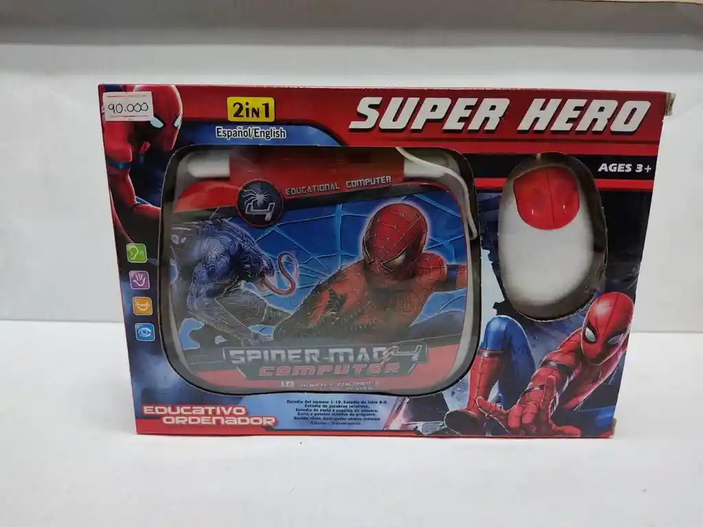 ¡Con la computadora portátil Candide Spiderman bilingüe, los niños aprenden jugando! Ordenador portátil infantil bilingüe (español / inglés) con diferentes grupos de actividades, a saber: música, letra, letra, ortografía, preguntas y respuestas, suma y división. Con la computadora portátil de Spider-Man, los niños aprenden jugando. Utiliza 3 pilas AA no incluidas. ¡Todo esto en un diseño totalmente estilizado del personaje de Spider-Man, uno de los héroes favoritos de Marvel! Caracteristicas: Material: plástico y componentes electrónicos. Color: rojo y azul. Energía: Utiliza 3 pilas AA no incluidas. Bilingüe. Idioma ingles español