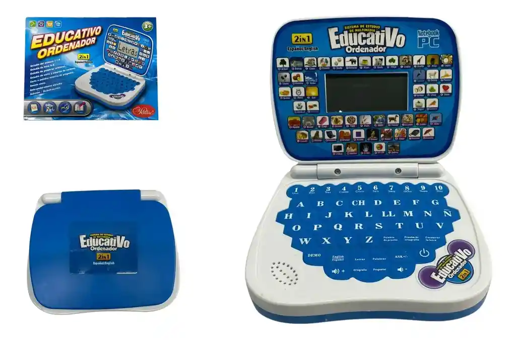 Computador Didáctico 2 En 1 Español E Ingles Laptop ref 6682ES-LCD Juego para niños educativo ordenador de español portátil ordenador de aprendizaje para niños en español e ingles El mini computador para niños Desarrollar aprendizaje Mejora la imaginación del niño, el pensamiento lógico, la coordinación de los ojos y la capacidad de las manos. colorido, llamativo idioma español Letras Palabras Preguntas Y Respuestas