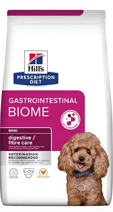 Hills Perro Gastro Biome una nueva tecnología de ingredientes, está especialmente formulado por nutricionistas y veterinarios para el cuidado digestivo para resolver la diarrea, promover heces saludables, limitar futuros episodios de diarrea, nutrir y activar el microbioma intestinal.