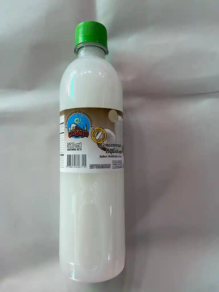 Concentrado líquido con sabor artificial a coco marca la granja, presentación por 500 ml contenido neto