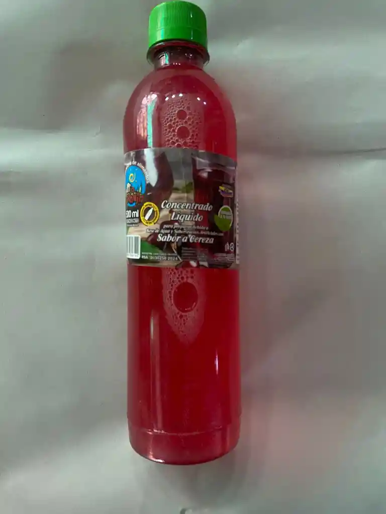 Concentrado líquido con sabor artificial a cereza, presentación por 500 ml contenido neto.
