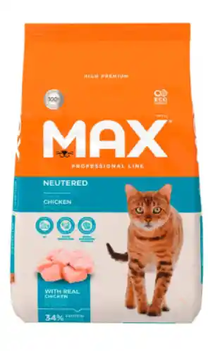 El concentrado para gatos castrados de Max es un concentrado Premium Especial cuya fórmula proporcionará una alimentación completa y fue especialmente diseñada para evitar el aumento de peso en gatos que hayan sido castrados. Contiene especiales nutrientes que favorecerán la salud del tracto urinario y que además le brindarán la especial nutrición que necesita. Es un concentrado apto para suministrar a partir de los 6 meses de vida y tiene un rico sabor a pollo con el cual los gatos se deleitarán. Su fórmula está suplementada con L- carnitina que contribuirá a una eficiente quema de grasa, aceleración del metabolismo y el mantenimiento del músculo.