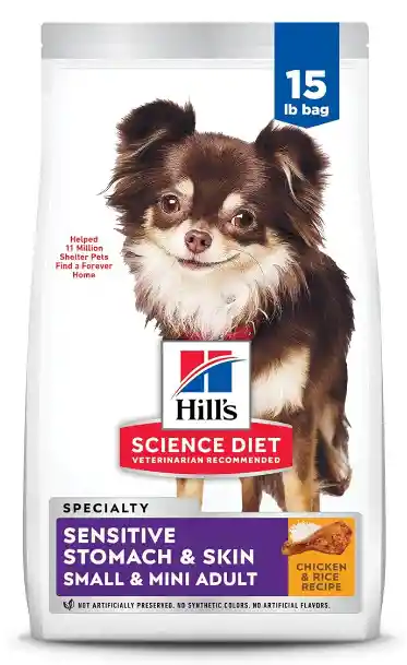 El alimento seco para perros Hill's Science Diet Sensitive Stomach Skin Small Mini; brinda una salud digestiva óptima a la vez que nutre la piel y promueve un pelaje lustroso. -Fibra prebiótica para promover las bacterias intestinales benéficas y favorecer un microbioma equilibrado. -Alta digestibilidad para la óptima absorción de los nutrientes y facilitar recoger las heces. -Vitamina E y ácidos grasos omega 6 para nutrir la piel.