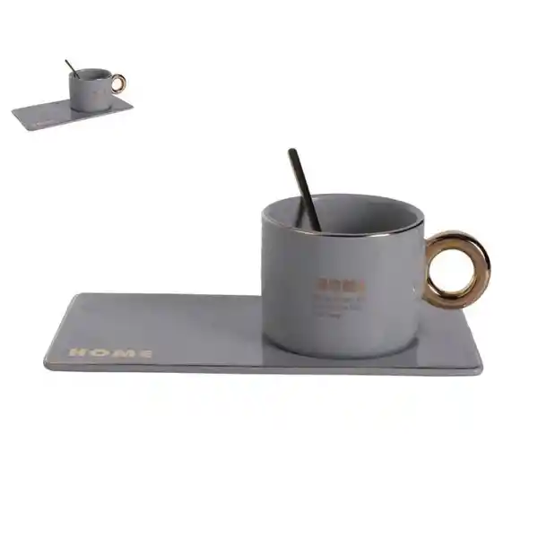 Un Accesorio Indispensable en tu Cocina Para Sacar Los Corchos de Forma Suave y Sin Esfuerzos. Es un Regalo Con Estilo Elegante Que Aporta Decoración. Mug Con Plato Galletero y Revolvedor. Color Gris. Marca: Concepts. Sku 209207