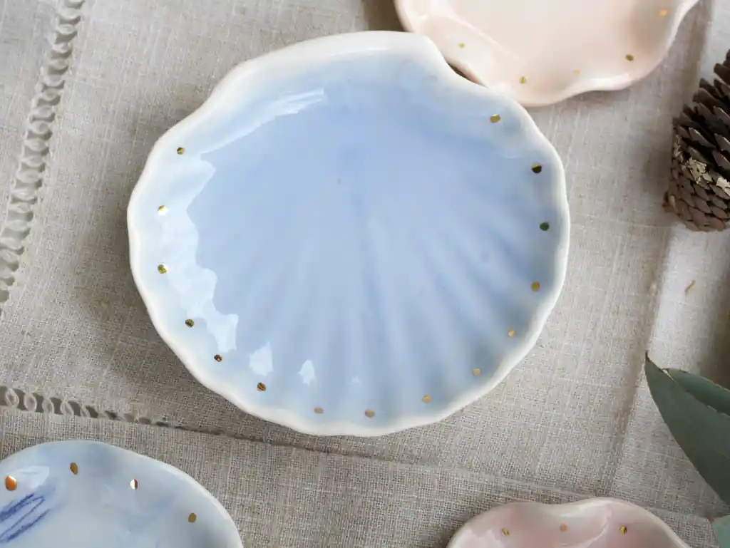 plato en forma de concha con Borde de puntos de oro de 24 k
