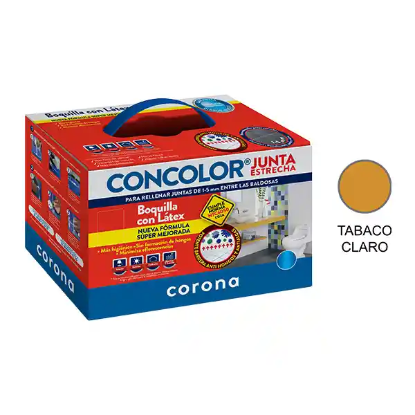 "Tienda Oficial de Repares S.A. CONCOLOR PORCELANATO TABACO X 2 KILOS CORONA Concolor porcelanato tabaco x 2 kilos corona: dale vida a tus proyectos con concolor en tono porcelanato tabaco de corona. Este producto de alta calidad es ideal para lograr un estilo rústico y natural en tus superficies interiores. Su fórmula premium garantiza una aplicación suave y un acabado uniforme en diferentes superficies. El envase de 2 kilos es perfecto para proyectos medianos y amplios. Transforma tus espacios con el tono cálido y versátil de concolor en porcelanato tabaco, creando una atmósfera acogedora y auténtica. Obtén resultados excepcionales en tus proyectos de decoración y renovación con concolor en presentación de 2 kilos. Especificaciones Técnicas: * Listo para usar. * No requiere mezclas con otros materiales * No requiere mezclas con otros materiales * Disminuye la aparición de eflorescencias en boquillas de color oscuro. RECUERDA: * Somos una empresa comercializadora de productos en líneas de Ferretería Liviana, Tornillería, Repuestos de Automotor, Elementos para la Seguridad y Construcción, Herramientas Agrícolas, Manuales y Eléctricas. * La mayoría de todos nuestros productos tienen garantía. * Todos nuestros productos son nuevos, nunca encontrarás artículos usados o desgastados, todos están en perfectas condiciones y el envío lleva un proceso de empaque adecuado. * Todos nuestros productos están en constante proceso de prueba de calidad por parte de nuestros proveedores. * Contamos con una excelente reputación de distribuidores ferreteros en distintas partes del país. * Encuéntranos o Contáctanos en nuestras redes sociales y pagina web."