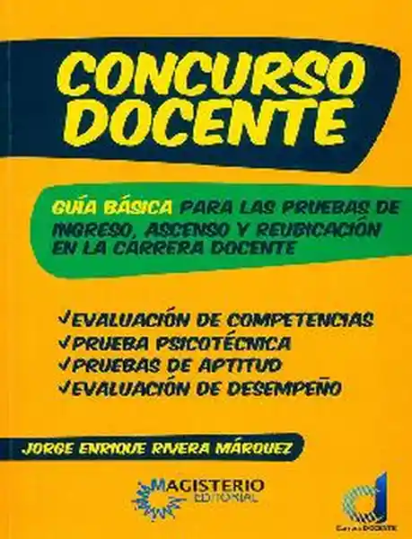 Jorge Enrique Rivera Márquez - Guía Básica Para Las Pruebas de Ingreso; Ascenso y Reubicación en la Carrera Docente. Este Libro es Una Guía Básica Para Quienes se Proponen Ingresar; Ascender; Permanecer y Reubicarse Salarialmente en la Carrera Docente. Explica Mediante Esquemas y Resúmenes Aspectos Tan Importantes Como: Qué es el Estatuto Docente Qué es el Escalafón Docente Cómo se Ingresa al Sistema Educativo Estatal Cómo se Permanece en el Sistema Educativo Estatal Cómo se Asciende en el Escalafón Docente Qué es la Evaluación de Competencias y Cuáles Son Sus Objetivos Cómo Están Elaboradas Las Pruebas Que Componen la Evaluación de Competencias en Qué se Evalúa a Los Directivos Docentes; Orientadores; y a Los Docentes Aspirantes en Cada Una de Las Diferentes Áreas Qué Son Las Pruebas Psicotécnicas en Qué Consisten Las Pruebas de Aptitud Qué es la Evaluación de Desempeño Por su Espíritu Sintético y Práctico; Esta Obra Será de Gran Ayuda Tanto Para Quienes Aspiran a Convertirse en Docentes; Como Para Quienes ya lo Son y Desean Reflexionar Sobre su Desempeño y la Calidad de su Propia Formación Profesional; Frente a la Responsabilidad y Trascendencia Social Del Magisterio. Qué es el Estatuto Docente Qué es el Escalafón Docente Cómo se Ingresa al Sistema Educativo Estatal Cómo se Permanece en el Sistema Educativo Estatal ISBN: 9789582010805