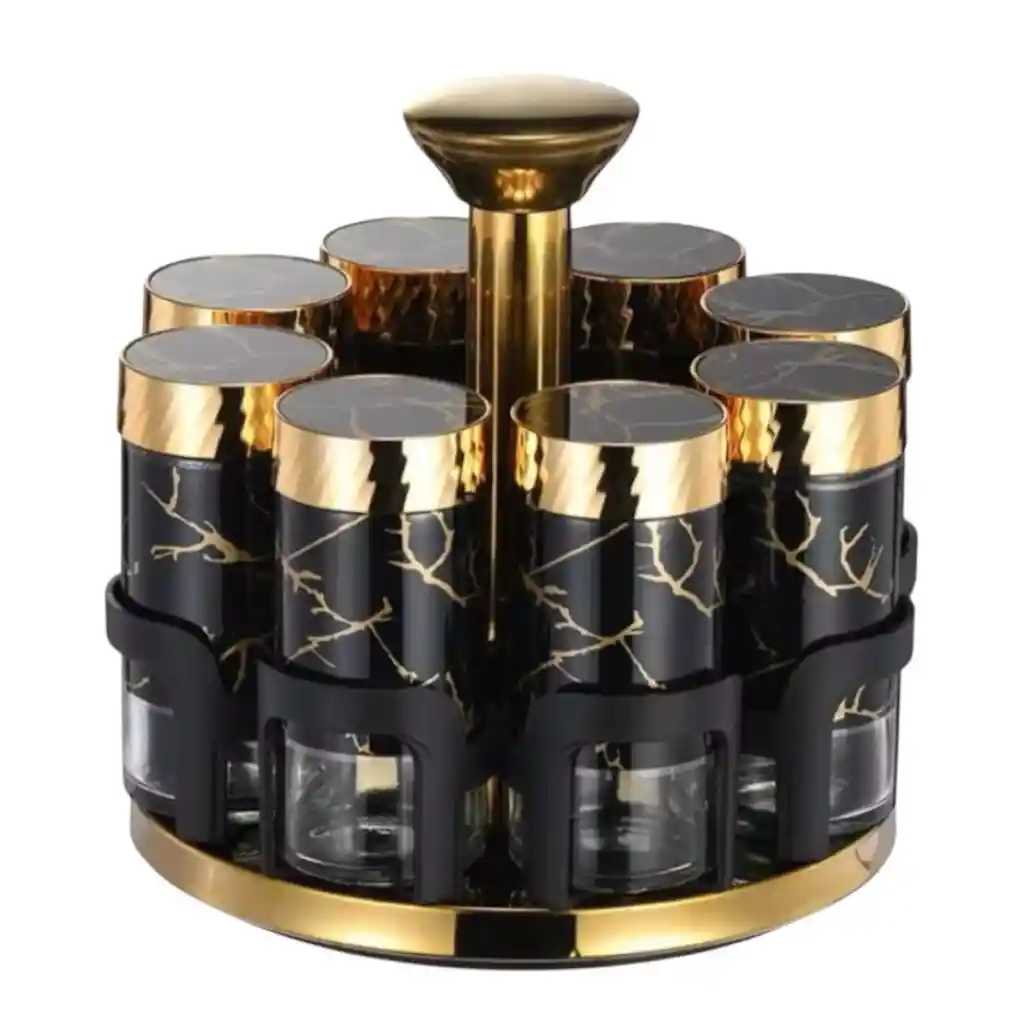 CONDIMENTERO CON BASE GIRATORIA 8 FRASCOS DISEÑO MARMOL. para sal y pimienta Botella ,Juego de tarros de especias.