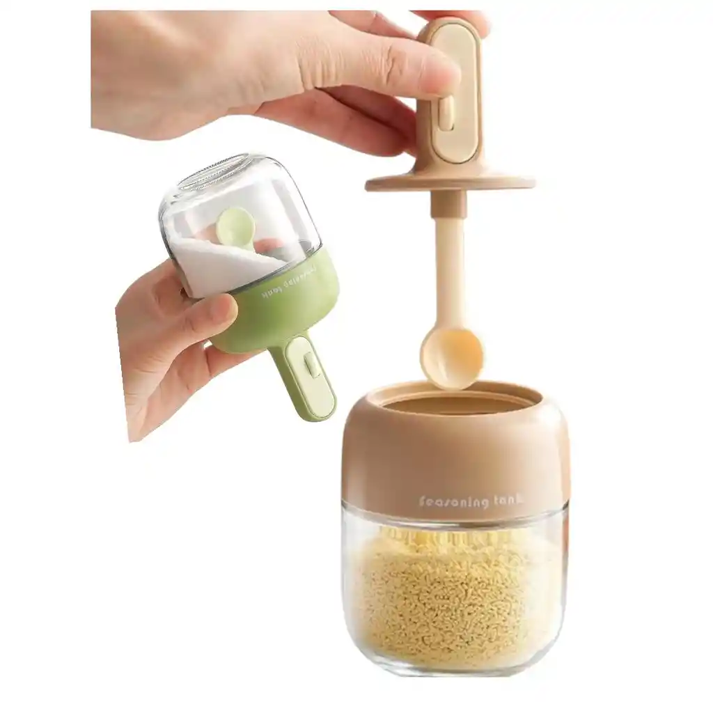 Especiero Telescópico, Recipiente de Vidrio Ajustable con Cuchara Integrada, Almacenamiento Sellado para Condimentos, Diseño Compacto, Ideal para Cocina Doméstica y Uso Al Aire Libre, Paquete x1