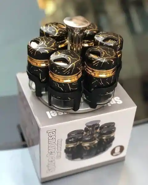 Tarros de especias giratorios de mármol de 7 piezas | Cocina | Decoración del hogar | Organizador eficiente para almacenamiento de especias de cocina.
