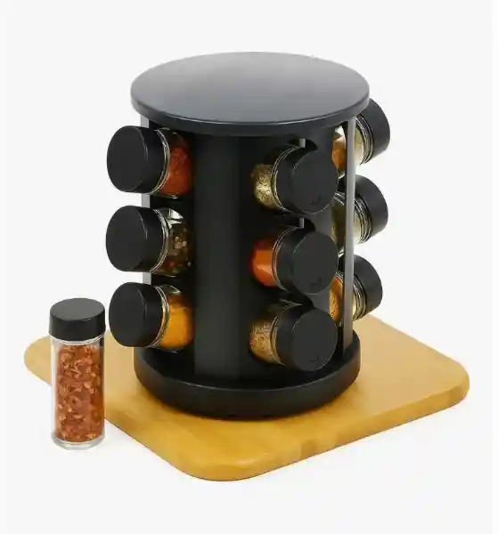 Condimento Giratorio Porta 6 recipientes de Vidrio es un especiero súper práctico para tener tus condimentos organizados. Viene con 6 potes de vidrio que mantienen las especias frescas y a mano. incluye una base 360 " El diseño giratorio hace que sea fácil acceder a lo que necesites. Ideal para la cocina, ¡te simplifica la vida al cocinar!