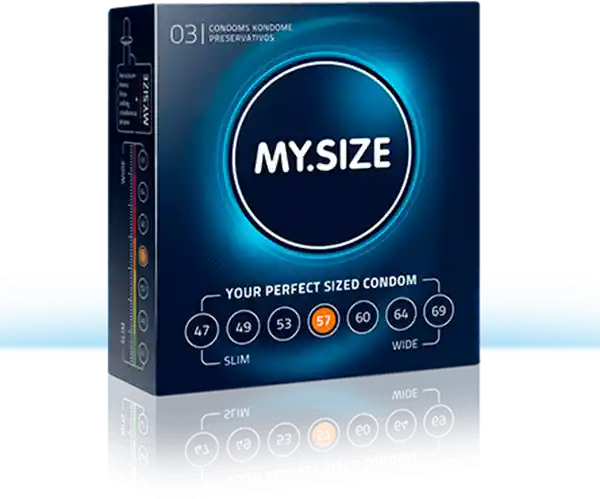 Condones de Látex de Fabricación Alemana Con Medidas Específicas Que se Ajustan al Ancho Del Pene. My. Size 57 Almacena en un Espacio Seco y Frío. Evita el Calor y Luz Directa Del Sol. *Incluye 3 Condones de Látex Natural