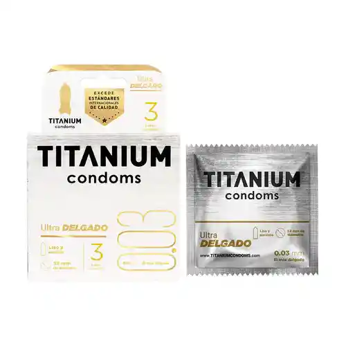 Sensibilidad, realismo y seguridad con los Condones Titanium Ultra Delgado x 3 Los Condones Titanium Ultra Delgado son los más delgados del mundo Los Condones Titanium Ultra Delgado permiten que goce intensamente de cada momento de placer al lograr que ambos sientan la mayor sensibilidad durante la relación sexual. Es un condón que no se siente para que pueda disfrutar de la máxima protección, seguridad y al tiempo alcance orgasmos fuertes, pero, sobre todo, muy deseosos. Tiene un espesor de 0.03 milímetros, esto lo hace el más delgado del mundo, el más fino y el más elástico. Tiene el ajuste perfecto para que viva el sexo sin complicaciones y es lubricado generando un mejor desliz. Características de los Condones Titanium Ultra Delgado x 3 Material: Fabricado con látex premium para la máxima seguridad y resistencia Electrónicamente testeado Posee depósito de fluidos en la punta Lubricado con silicona Presentación: 3 unidades Textura: lisa y paralela Lubricado con silicona Medidas: Ancho: 52 mm Espesor: 0.03 mm INVIMA: 2021DM-0022827 Excede los estándares internacionales de calidad
