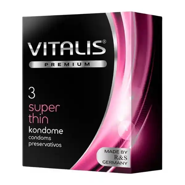 Condón Vitalis Super Thin x3U Aún más sensibilidad con la seguridad habitual. El condón de menos espesor de pared para el máximo placer. Combina la sensibilidad deseada con la protección exigida. Condón de látex natural, extra delgado, menor grosor de pared: 0.055mm – 0.060mm, lubricado con depósito. Peso: 18 gr Grosor: 5.8 cms Largo total: 7.5 cms Cantidad: 3 condones ¿Diversión sexual? ¡Con seguridad! Satisface tus deseos con productos VITALIS® premium para tu bienestar sexual. Condones certicados, lubricantes sensuales y juguetes entretenidos.¡Según tu gusto! Guarde los preservativos en un lugar fresco y seco, lejos de la luz directa del sol. Calidad: Los condones VITALIS son elaborados en Alemania y son sometidos a pruebas médicas y técnicas rigurosas. La producción y los ensayos de calidad se realizan según la norma ISO 4074: 2002, la norma de calidad más estricta para preservativos de látex. Despacho a todo Colombia