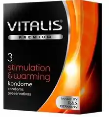 Descripción del Producto ¡Sexo ardiente! El condón con un agradable efecto de calor para llegar al límite de tus sentidos. Una cuestión candente. Condón de látex natural, transparente, con lubricante que causa efecto de calor (estimulante), con depósito. Guarde los preservativos en un lugar fresco y seco, lejos de la luz directa del sol. ¿Diversión sexual? ¡Con seguridad! Satisface tus deseos con productos VITALIS® premium para tu bienestar sexual. Calidad: Los condones VITALIS son elaborados en Alemania y son sometidos a pruebas médicas y técnicas rigurosas.La produccion y los ensayos de calidad se realizan según la norma ISO 4074: 2002, la norma de calidad más estricta para preservativos de látex. Condones certicados, lubricantes sensuales y juguetes entretenidos.¡Según tu gusto! Cantidad: 3 condones Grosor: 5.8cms Largo Total: 7.5 cms Peso: 18gr