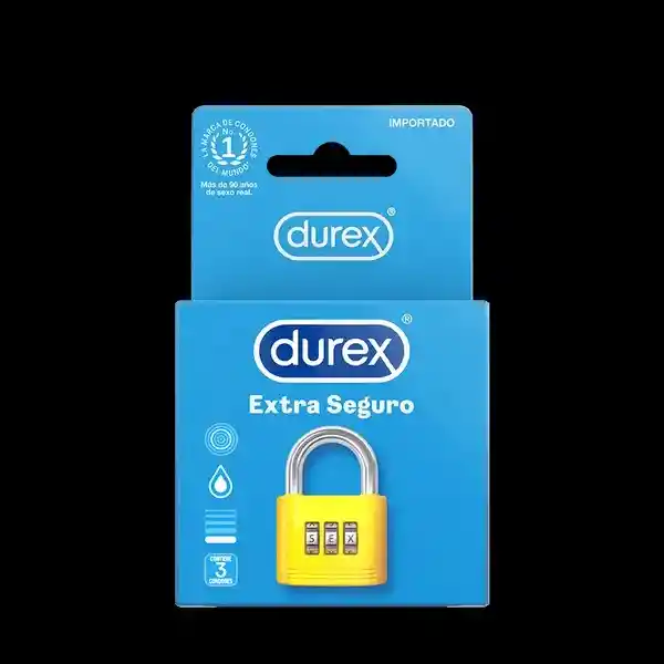 Lubricación extra para mayor confort Ligeramente más grueso para mayor tranquilidad Huele menos a látex Los condones Durex® Extra Seguro han sido diseñados para ofrecerte máxima protección durante el sexo. Hechos de un látex ligeramente más grueso y lubricación de silicona extra, los condones Extra Seguro te ofrecen tranquilidad sin tener que comprometer el placer. Relájate y déjate llevar. Recuerda que ningún método anticonceptivo es 100% seguro contra el embarazo, VIH o enfermedades de transmisión sexual. Siempre es bueno estar informado, así que lee la información que viene adentro del empaque, en especial si vas a utilizar los condones para sexo anal o sexo oral. Hechos para buen sexo real Hechos de un látex ligeramente más grueso y lubricación de silicona extra Forma anatómica Calidad Durex®: 100% testeados electrónicamente con más de 5 pruebas de calidad llevados a cabo en cada lote; también son dermatológicamente testeados.