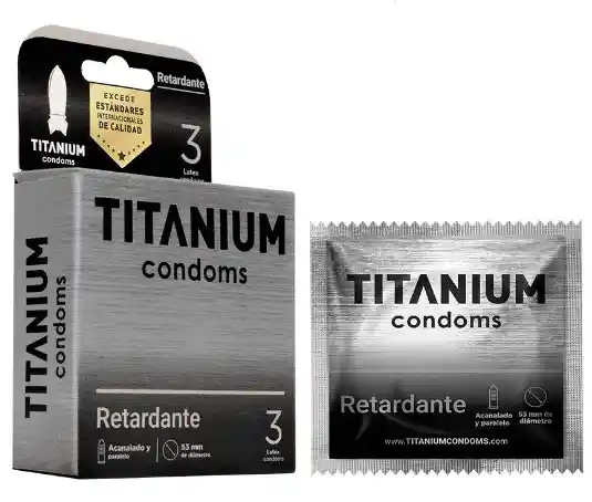 Retarde su orgasmo mientras disfruta de un sexo seguro con los Condones Titanium Retardante x 3 Una composición delgada en látex para un mayor placer Creado con lidocaína y benzocaína, este condón hará que su eyaculación se tarde un poco más, haciendo que pueda sentir mucho más y alcanzar el éxtasis total con su pareja durante el acto sexual. Ambos componentes actúan como analgésico, esto quiere decir, que durante el acto soportará una mayor estimulación y su eyaculación será tardía. Cuenta con líneas texturizadas que harán que su compañero obtenga una satisfacción completa y a la vez, al tener una de las texturas más delgadas, podrá ofrecerle las sensaciones más reales.