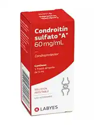 Descripción: Condroprotector inyectable. Antiinflamatorio natural. Rápida respuesta. Está desarrollado a base de un purificado de Condroitín Sulfato A, biopolímero con propiedades regeneradoras, antiinflamatorias y analgésicas de origen natural. Componente fundamental de la matriz cartilaginosa, cuya principal función es retener agua, promoviendo su elasticidad y conservando su estructura saludable Acción: Condroprotector. Condroitín Sulfato reemplaza al condroitín sulfato perdido en el cartílago. Atrae agua, rehidratando el cartílago. Posee acción antiinflamatoria, inhibe las prostaglandinas y la fijación de complemento. Destruye o inhibe la formación de trombos a nivel de la microcirculación. Inhibe enzimas (Proteasas). Composición: Condroitín Sulfato “A”: 6 g. Excipientes c.s.p.: 100 ml. Indicaciones: Coadyuvante en el tratamiento de numerosas patologías osteoarticulares: Osteoartritis, artrosis primarias y secundarias, discoespondilosis, coxartrosis por displasia, condroprotección y frente a situaciones que requieran un entrenamiento intensivo. Fortalecimiento del tejido cartilaginoso a cualquier nivel (articular, tráquea, pabellón auricular). Coadyuvante en trastornos urológicos. Dosificación: Caninos: 3 mg / kg equivalente a 1 ml cada 20 Kg, vía SC o IM, cada 72 horas. La duración del tratamiento está sujeta a criterio profesional.