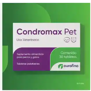 Condromax® Pet es un complemento alimenticio para perros y gatos destinado a la suplementación de los mucopolisacáridos sulfato de condroitina y glucosamina, así como de los minerales cobre, manganeso y zinc. La suplementación con Condromax® Pet es recomendada en todos los momentos en que haya necesidad de aporte de los componentes de su formulación, como en animales sometidos a ejercicios constantes, animales en crecimiento o en condiciones especiales.