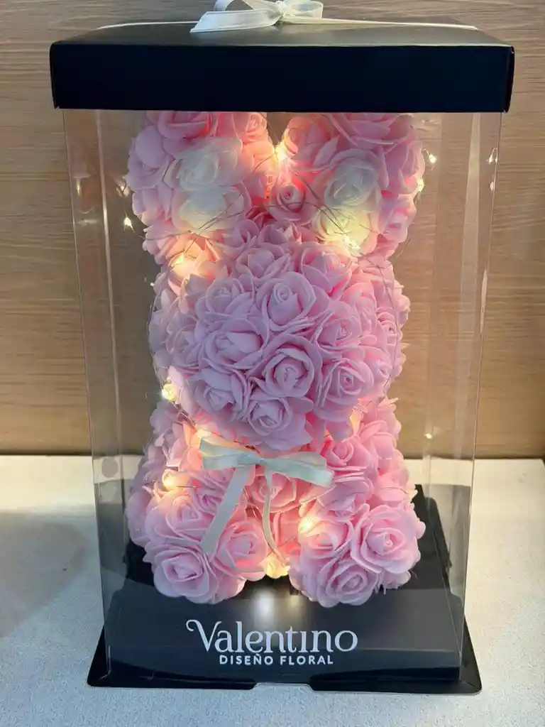 Hermoso conejo elaborado con delicadas rosas blancas artificiales, presentado en caja de acetato premium con tapa y lazo decorativo. Incluye luces LED cálidas que realzan cada detalle, creando un efecto romántico y sofisticado. Un regalo duradero, elegante y lleno de significado, perfecto para cumpleaños, aniversarios, amor y ocasiones especiales.