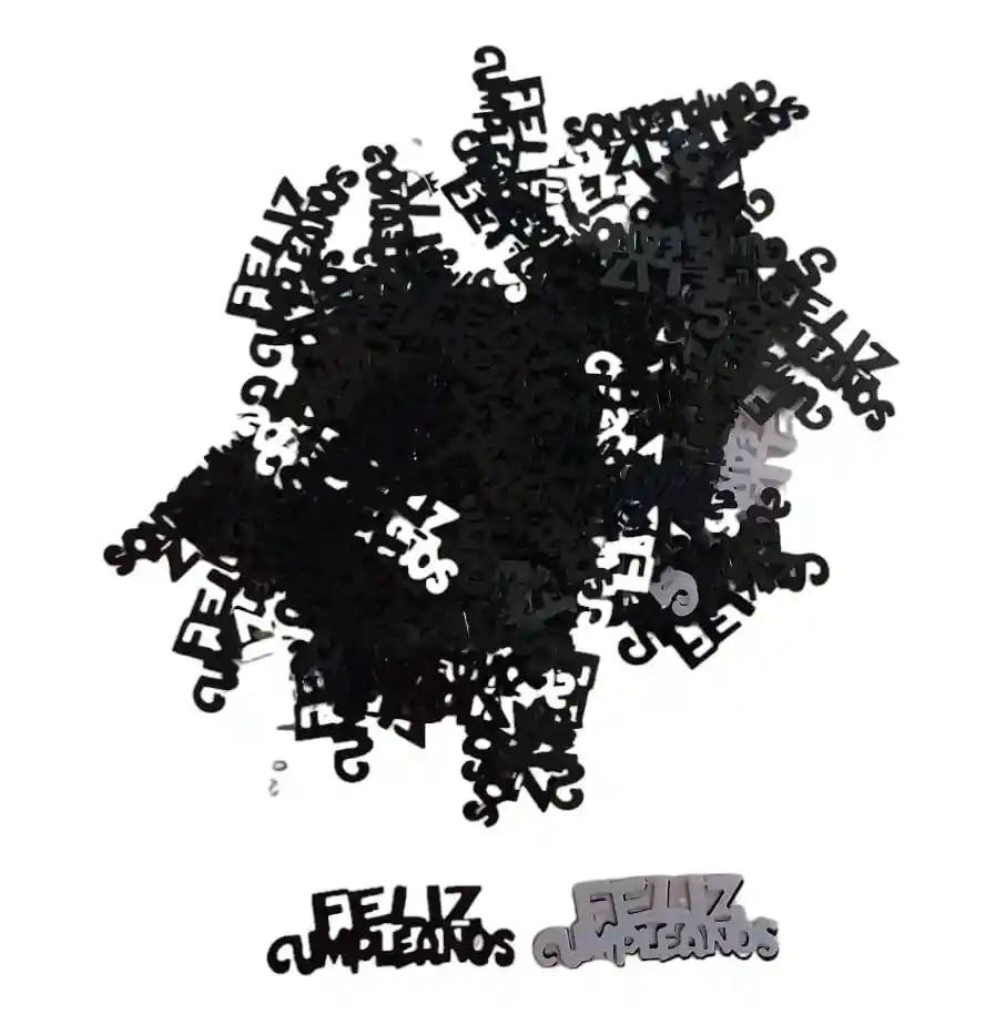 CONFETI DE MESA FELIZ CUMPLEAÑOS COLORES SURTIDO BLANCO Y NEGRO