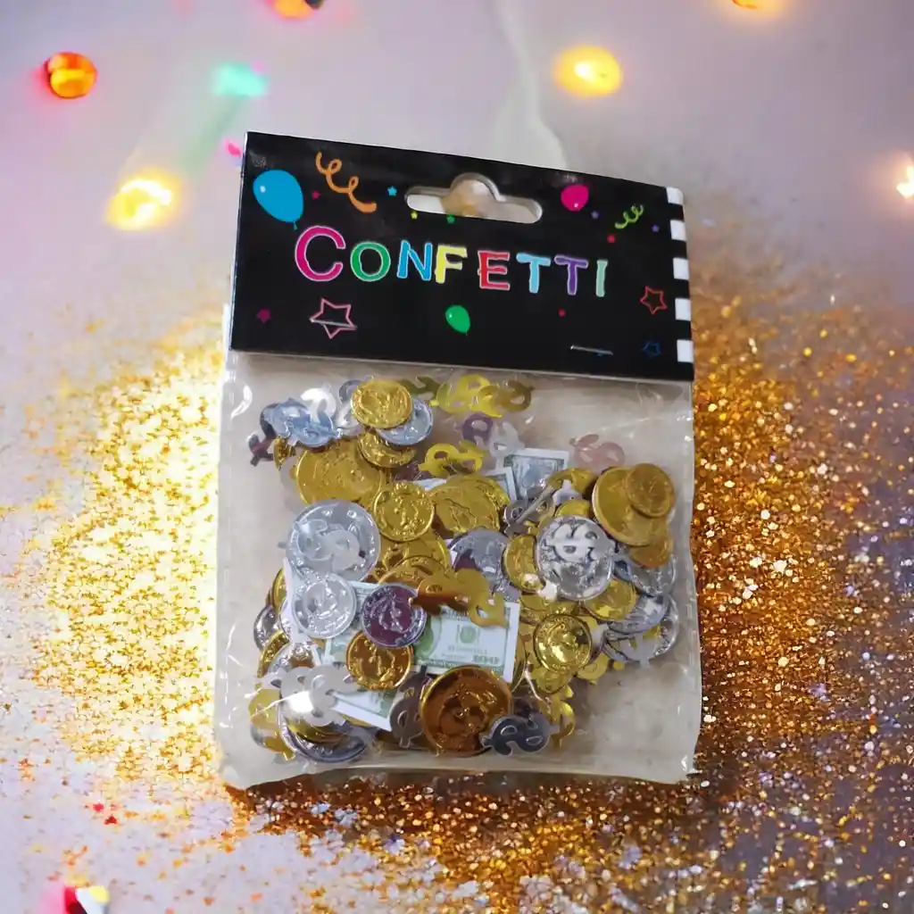 Confeti de Mesa "Feliz Cumpleaños Monedas y Billetes": ¡Haz que tu celebración sea inolvidable con este confeti temático! Con una mezcla de monedas y billetes de colores vibrantes, este confeti añade un toque de riqueza y diversión a tu mesa de cumpleaños. Es perfecto para aquellos que desean una celebración llena de prosperidad y buenos deseos financieros. ¡Que la fiesta comience con un toque de fortuna!