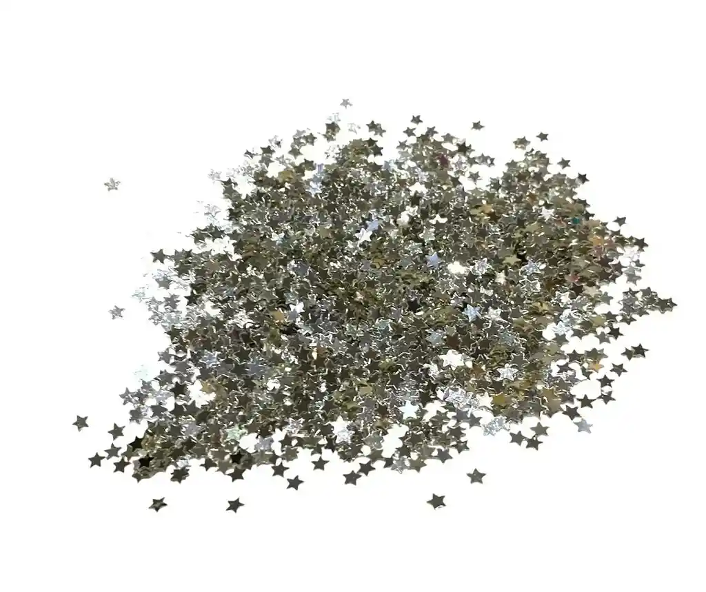 Celebra con estilo con nuestro confetti metalizado de estrellas Plateada! Este confetti es el detalle perfecto para decorar y añadir brillo a tu fiesta. Con su diseño de estrellas, hará que tu evento sea memorable y elegante. ¡Agrega un toque de glamour con nuestro confetti