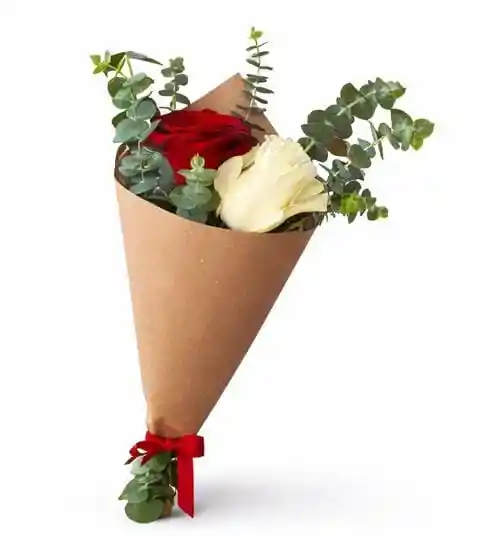 Conito de rosas y eucalipto
