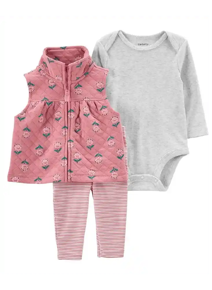 Conjunto 3 Piezas Con Chaleco Floral - Multicolor / 12 Meses