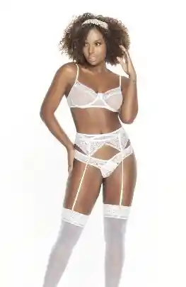 El color blanco siempre a representado la inocencia y la pureza, en esta ocasión serás una inocente y hermosa mujer decida a pasar un excelente momento, con este conjunto de 3 piezas los deseos que pidas serán concedidos, su material de Nylon lo hace fácilmente adaptable y suave al cuerpo. Incluye brasier, liguero y tanga, NO incluye medias. Se recomienda lavar a mano y dejar secar al aire. Talla S/M
