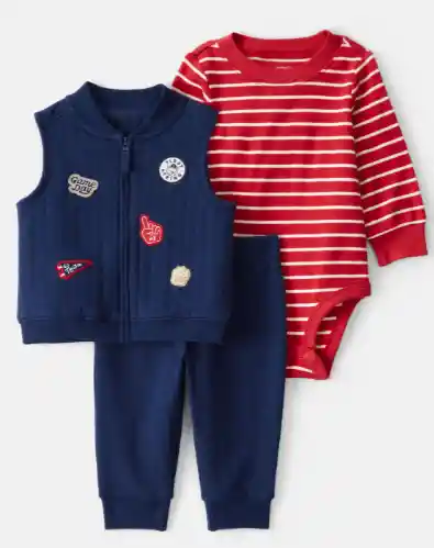 Conjunto 3 Piezas Chaleco, Body Manga Larga y Pantalón Marca Carters Talla 6 Meses