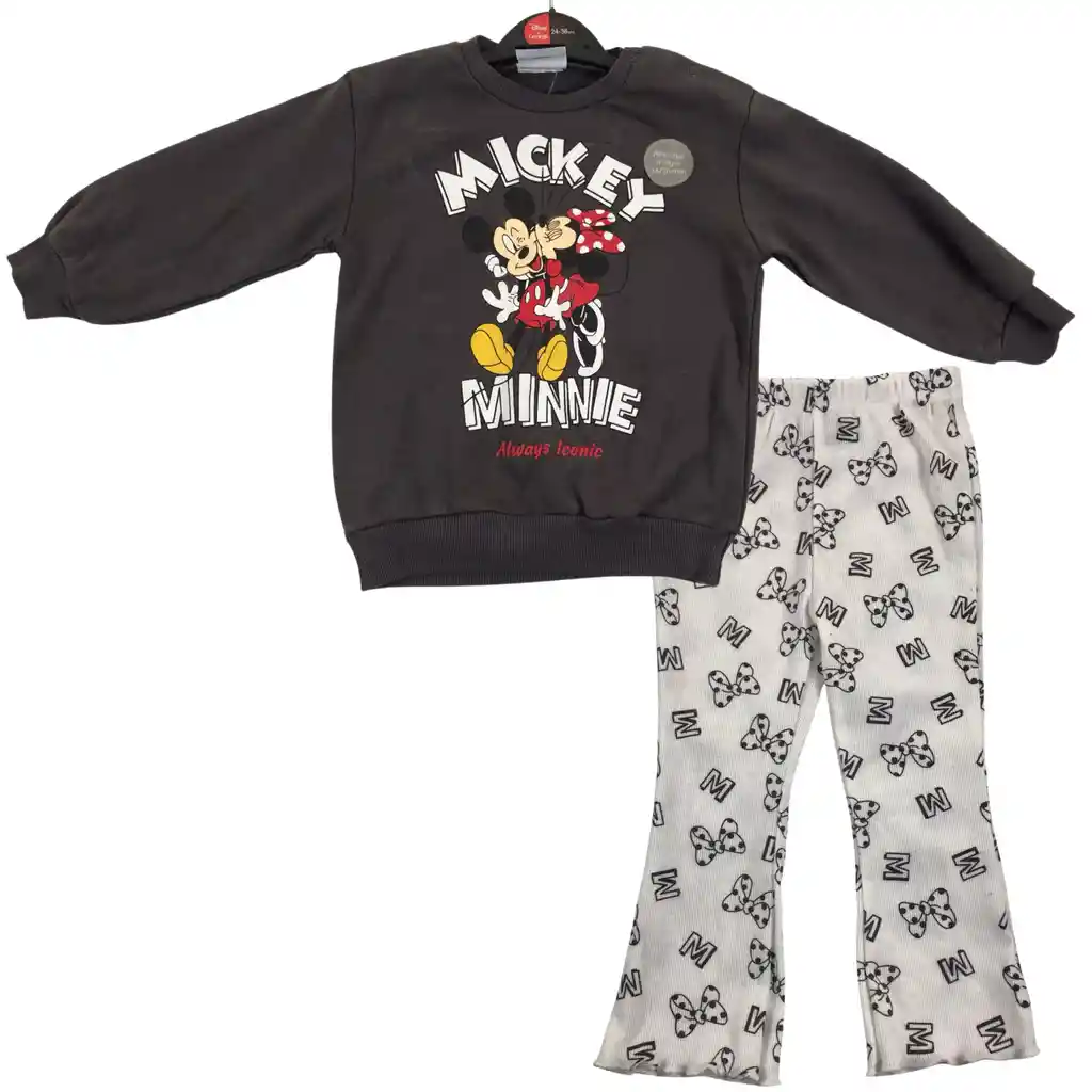 Hermoso conjunto marca Disney ideal para bebés de 18 a 24 meses, confeccionado en tela suave y cómoda que brinda abrigo y libertad de movimiento. Este producto incluye: Talla: 18-24 meses Buso manga larga color gris oscuro con estampado frontal de Mickey y Minnie Always Iconic Pantalón color gris claro con estampado de moños y letras de Minnie y cintura elástica para mayor comodidad Perfecto para uso diario, salidas casuales o climas frescos, combinando suavidad, estilo y la calidad característica de Disney.