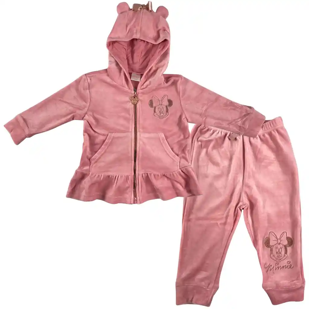 Talla: 18 a 24 meses Hermoso conjunto marca Disney elaborado en tela tipo peluche suave y abrigadora, ideal para climas fríos y para mantener al bebé cómodo durante el día. Este producto incluye: Chaqueta color rosado con capota, cierre frontal, bolsillos y estampado de Minnie Mouse Pantalón color rosado con cintura resortada y detalle estampado de Minnie en la pierna Perfecto para uso diario, salidas casuales o temporadas frías, brindando abrigo, suavidad y el estilo clásico de Disney.