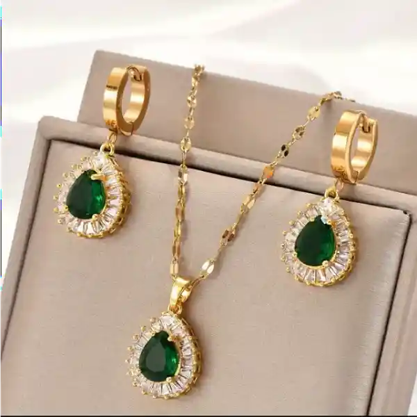 Conjunto en acero inoxidable,collar y aretes con circonita cúbica .