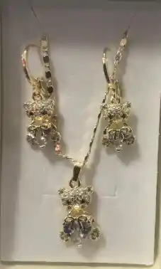 Conjunto Collar y Aretes en forma de Oso Con Diamante