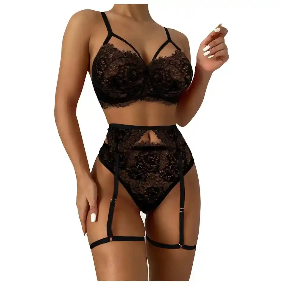 Conjunto con ligueros Color negro Talla única