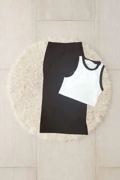 Conjunto de falda y top color negro con blanco,estilo casual. Talla Unica