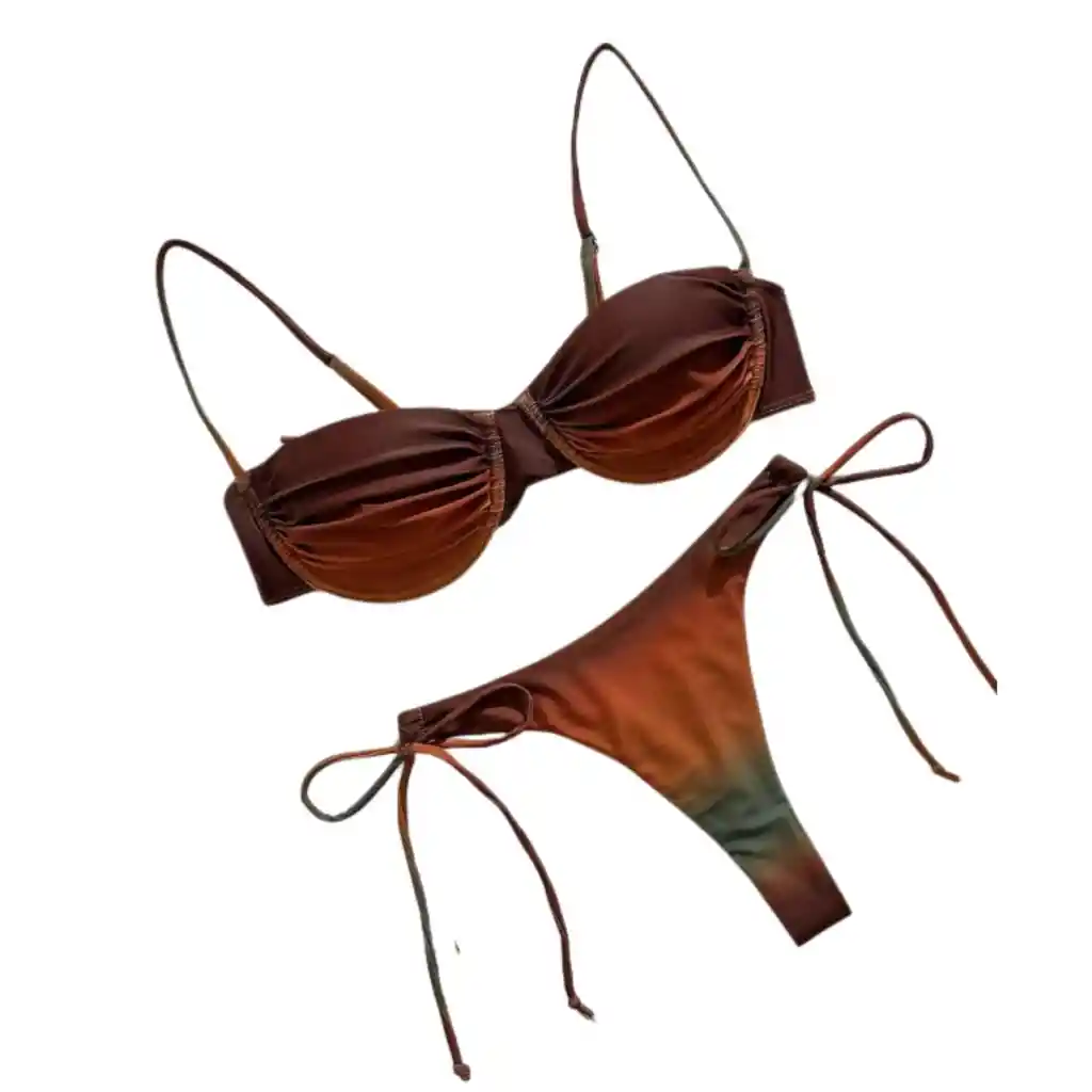 Conjunto de bikini de dos piezas con fruncido degradado, elegante y sexy, para verano. TALLA S