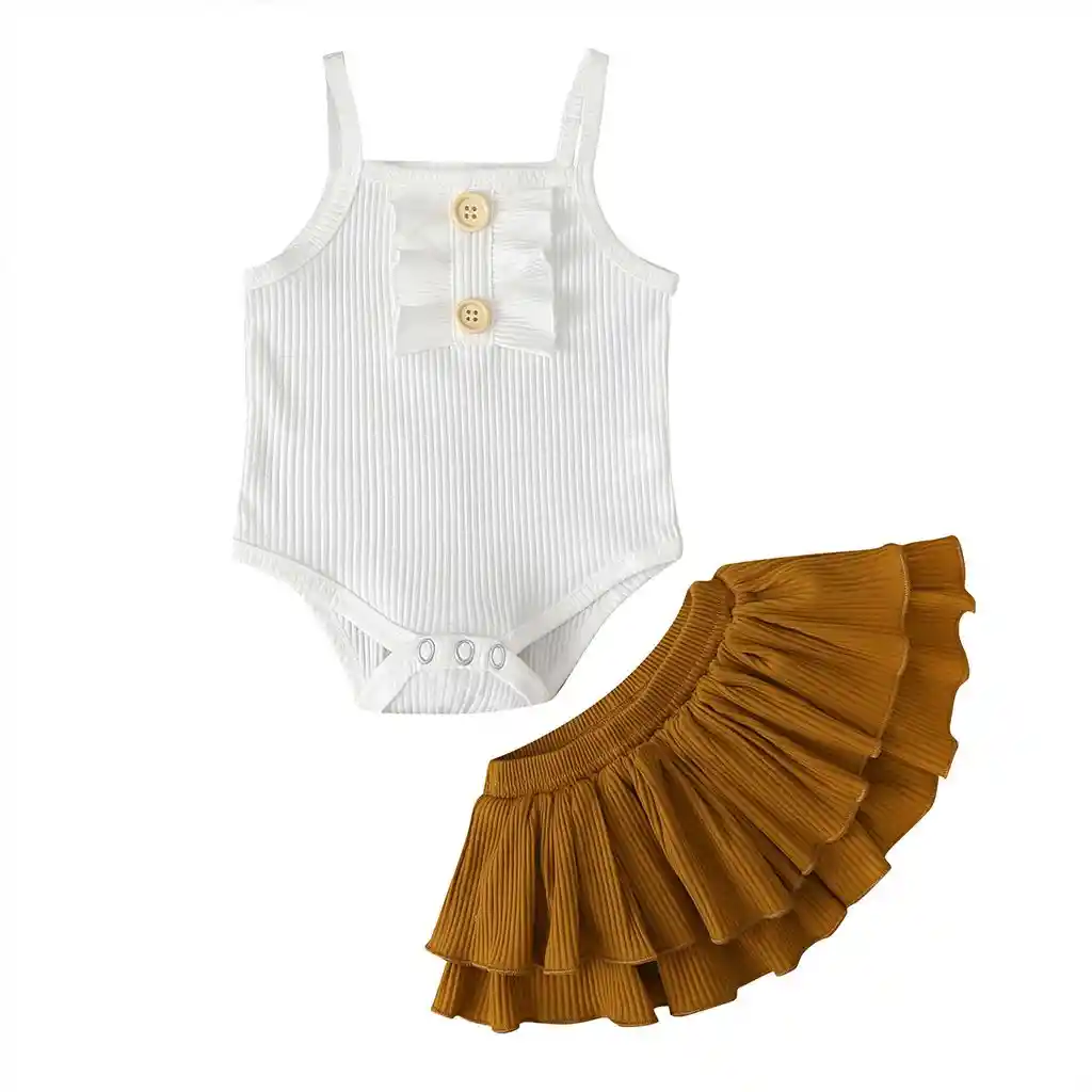 Conjunto en algodón de falda en bolero y body blanco 12-18 Meses
