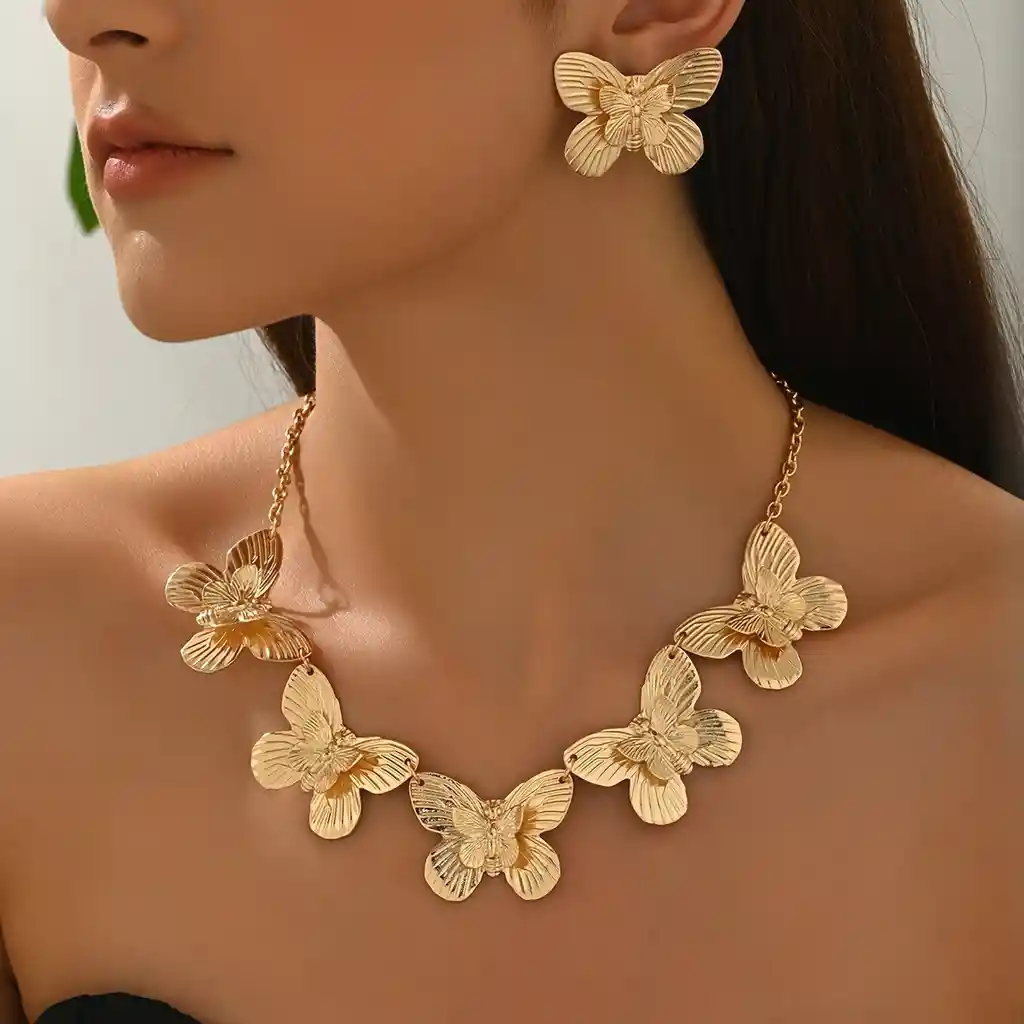 Conjunto de collar y aretes bohemios vintage - Cadena de capas en tono dorado con colgante redondo, joyería delicada