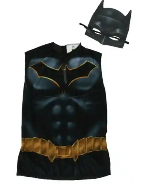 ¡prepárate para proteger las calles de gotham con este disfraz de batman™! el juego incluye un chaleco y una máscara de batman™: ¡simplemente póntelos sobre tu ropa habitual y estarás preparado para luchar contra los malos! ¡Perfecto para Halloween, fiestas de disfraces o en cualquier momento que quieras jugar a fingir que eres tu superhéroe favorito de DC Universe! se adapta a los tamaños 4-6 edades: 4+ material: 100% poliéster instrucciones de cuidado: limpiar con un paño húmedo. No usa blanqueador. piso seco. no planchar ni lavar en seco. país de origen: importado