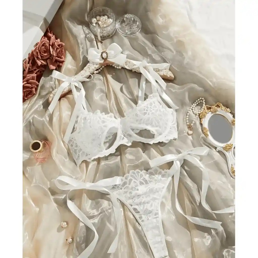 Eleva tu sensualidad con nuestro impresionante conjunto de lencería elegante. Este conjunto en blanco sólido presenta un exquisito encaje floral, creando un aura de feminidad y sofisticación. Incluye un sujetador y una tanga íntimos semitransparentes, ambos con aros para un soporte adicional y una correa de lazo ahuecada para un toque de coquetería. Confeccionado con una lujosa mezcla de 5% de elastano y 95% de poliéster, este conjunto ofrece una sensación suave y sedosa contra la piel. Perfecto para ocasiones especiales o para sorprender a esa persona especial, este conjunto de lencería es la elección ideal para mujeres que desean sentirse irresistiblemente elegantes y sensuales. ¡Hazte con este conjunto y deslumbra con tu estilo único! (SON 2 piezas NO INCLUYE ACCESORIOS)