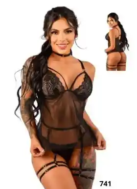 Conjunto De Lenceria Negro con Encaje Para Dama