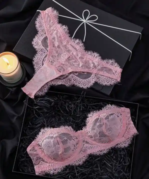 Características destacadas: Conjunto: brasier + tanga Encaje floral suave y delicado Color rosa romántico Diseño sensual y elegante Presentación ideal para regalo Disponible TALLA S Y M
