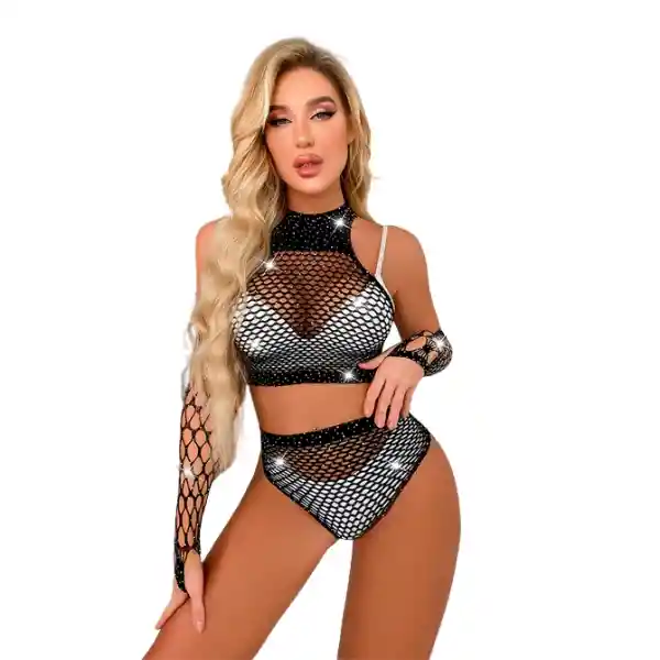 Conjunto de Malla Midnight Hay piezas que acompañan… y otras que lideran. Esta entra en escena como si ya supiera que todas las miradas son suyas. La mezcla de malla y brillo crea un efecto casi hipnótico, donde la piel se convierte en parte del diseño y no en algo que ocultar. Es atrevida, sí, pero con una seguridad que no necesita exagerar. Cada movimiento hace que cambie, que brille distinto, que se sienta viva. No es para gustar… es para dominar el momento. Características: Material: 93,4% polyamide+ 6,6% Elastane Talla: Única Color: Negro Incluye: Top en malla, mangas y panty —¿Eso brilla o eres tú? —Depende… ¿te estás acercando o ya caíste? La luz rebota en cada movimiento, imposible de ignorar. —No intentes entenderlo —dice ella, sonriendo— —solo míralo… mientras puedas. Y ahí está el truco: cuando crees que lo tienes claro… ya te atrapó. Cuidados Lavar a mano con agua fría y un detergente suave. Evita el uso de blanqueadores, el secado en máquina y el retorcido, ya que pueden dañar las fibras delicadas. Sécala al aire libre, preferiblemente a la sombra, y guárdala en un lugar limpio y seco para conservar su forma y suavidad. Confidencialidad: Tus pedidos se envían en una caja o sobre totalmente sellado y opaco sin ningún tipo de marcas. Para nosotros es muy importante tu privacidad. Despacho a todo Colombia Domicilio en Villavicencio.