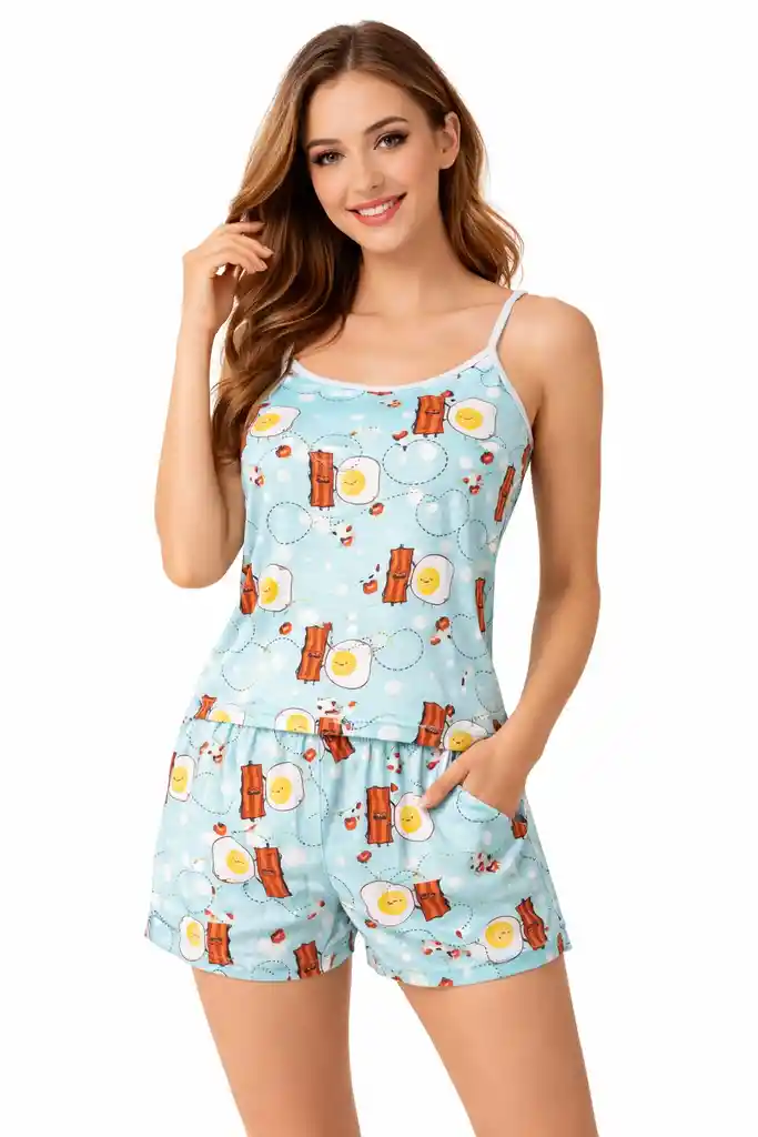 Conjunto de Pijama Estampada de Dos Piezas: Disfruta de las noches con estilo y comodidad con nuestro conjunto de pijama. Este juego de dos piezas incluye una camisola suave que acaricia la piel y pantalones cortos que brindan frescura y libertad de movimiento. Añade un toque de lujo, mientras que el corte moderno y elegante asegura que te veas fabulosa mientras descansas. Perfecto para noches tranquilas en casa o para un descanso reparado