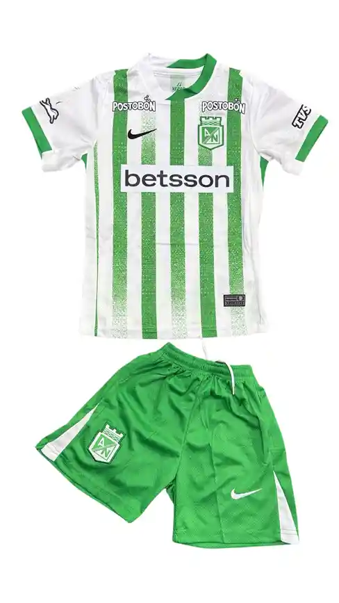 ¡Viste a tu pequeño campeón con el Orgullo Verdolaga!💚🤍 Lleva la pasión de Atlético Nacional a la próxima generación con este conjunto oficial de local, diseñado especialmente para los niños que sueñan con los colores del "Rey de Copas". Al momento de la compara uno de nuestros asesores se pondrá en contacto contigo para la talla que necesitas o nos puede contactar al 3006925233