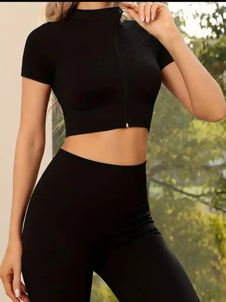 Conjunto deportivo, dos piezas, color negro, material acanalado, talla: M