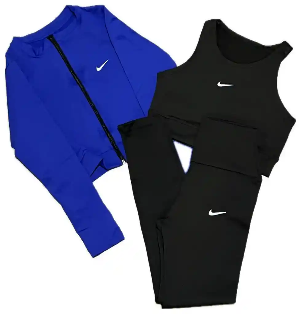 Conjunto deportivo dama, licra negra, top negro y chaqueta azul rey, material suplex deportivo semirrígido, talla única